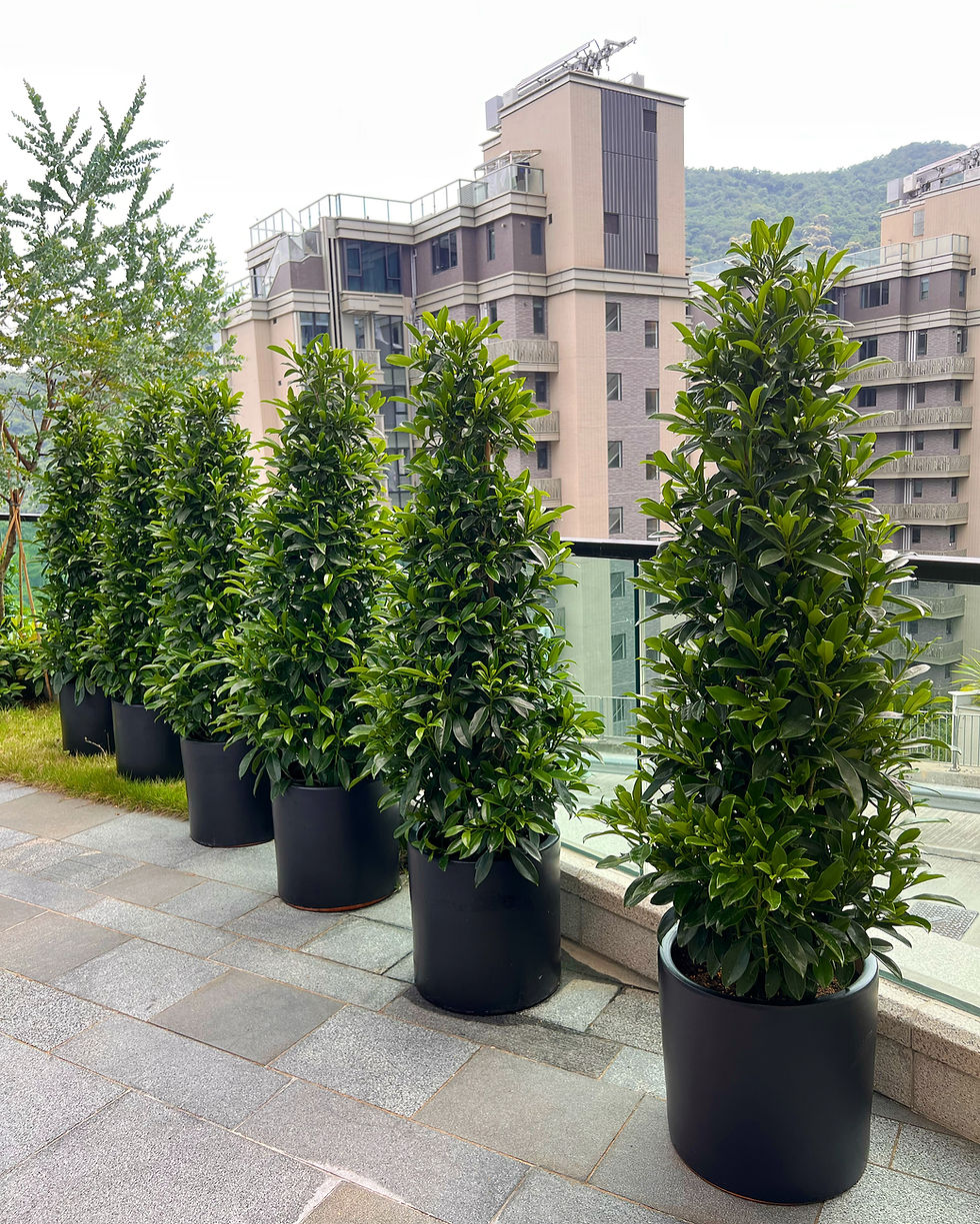 大型植物有不同的尺寸,例如高度及闊度,使用花盆的種類,可聯絡本園藝了解更多。
